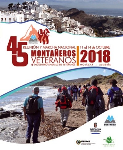La Federación Española de Deportes de Montaña y Escalada - FEDME, y la Federación Andaluza de Montañismo-FAM, a través de su comité de Veteranos, junto al Club Excursionista Montenegro, con la colaboración de la Diputación Provincial de Almería y los Ayuntamientos de Mojácar, Bédar, Cuevas del Almanzora, Pulpí, Sorbas y Níjar, convocan a cuantos federados, mayores de 40 años, interesados en participar en la 45ª MARCHA NACIONAL DE MONTAÑEROS VETERANOS 2018, a celebrar en el municipio de Mojácar –Almería, en el marco de las actividades programadas por la FEDME y la FAM, los días 11 al 14 de octubre de 2018.