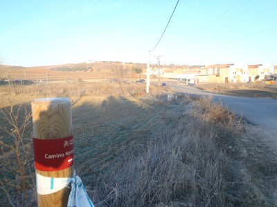 Avanzamos entre fincas privadas señalizadas como cotos de caza privados y compartimos, durante 5 km, camino con el GR-239 de peregrinación a Santiago. Sorteamos las fincas de Bergonza, las Viznagas o la Vega de la Cruz y ascendemos una pequeña colina, en cuyo mirador hay situadas varias mesas de picnic.