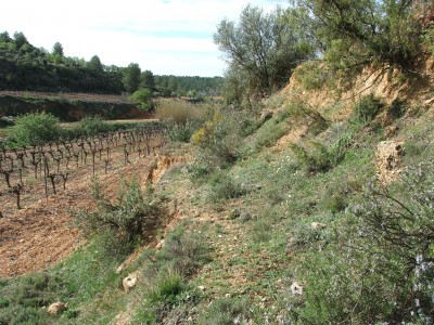 Sobre un paisaje de amplios y fértiles valles, el sendero recorre los terrenos que ocupa la cola del Embalse de Contreras, entre tierras de labor y junto al río que ahora se muestra tranquilo. Más tarde se encarama a la meseta de horizontes despejados cuajada de vides, almendros y olivos que anuncia la llegada a la pequeña localidad de la Pesquera.