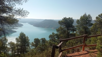 Desde un mirador habilitado en el trazado también se disfruta de una amplia panorámica del embalse de Contreras, que contiene las aguas del río Cabriel, y cuya presa se puede divisar a lo lejos, además del puente del Rabo de la Sartén; importante obra de ingeniería que fue construida para poder pasar la N-III en dirección a Valencia, evitando así el estrecho y sinuoso puerto de Contreras
