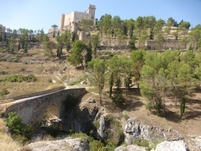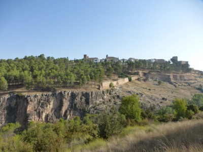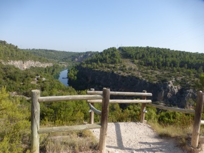 Ademas impresiona el entorno. Hoz y embalse de alarcon sale de alarcon atravesando la muralla y baja bruscamente hasta el puente de el picayo para subir despues a la zona alta de la hoz, donde predominan las tierras de labor. Despues bajara lentamente hasta situarse de nuevo al nivel del rio. Entramos a alarcon despues de cruzar el puente de tebar. Existe un recorrido mas corto que recorre la hoz junto al rio por la parte baja.