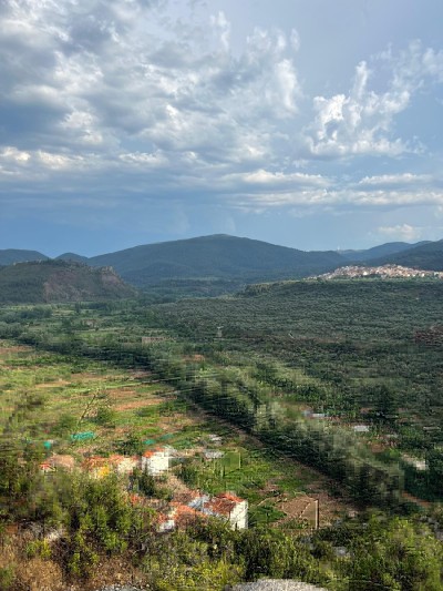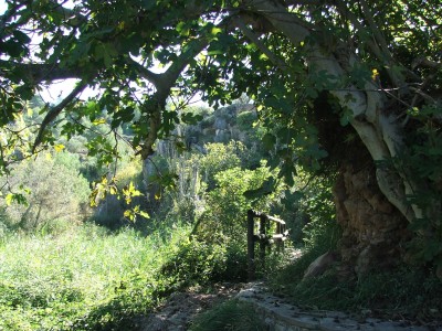 El trazado continúa por “el camino viejo” que lleva hasta el pueblo de Santa Cruz de Moya, recorriendo el manto de olivos que rodean gran parte de su núcleo de población. Ya en el casco urbano, una Derivación nos permite visitar la fuente de la Canaleja y el Lavadero de Santa Cruz de Moya. Después de atravesar el pueblo por en su parte baja siguiendo la calle Real, se llega a “Las Simas”, afloramientos de agua habilitados para la visita. La ruta continua hacia el “Molino del Medio” y hasta llegar al puente de “La Puente” pasando por el “Molino de La Puente” y los hornos de Yeso; prosiguiendo el cauce del río hasta llegar a La Presa. El sendero continúa por la huerta, situada a lo largo del río, mientras se disfrutan de las maravillosas vistas que ofrece el Valle hasta llegar a la aldea de La Olmeda, donde se encuentran las joyas de esta ruta, que son: el nacimiento, el lavadero y el “Batán de La Olmeda” donde se llega a través de una Derivación señalizada. Por último, se atraviesa la aldea de La Olmeda y se cruzar el río por un peculiar puente, hasta la zona recreativa de “Los Villares”.