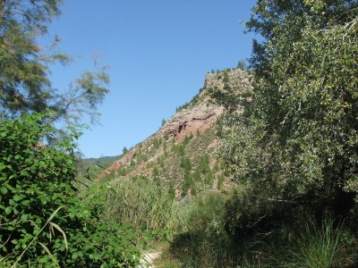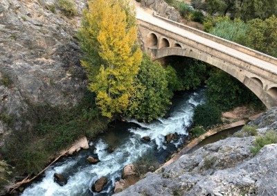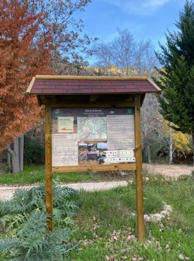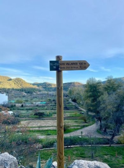 Este sendero recorre parte del trayecto que realizan las aguas del río Turia a su paso por la localidad de Santa Cruz de Moya. El punto de inicio se encuentra en el área recreativa de Los Villares, próximo a la aldea de La Olmeda, pedanía del municipio, donde además se localiza un área de servicio de autocaravanas. Desde este punto se puede disfrutar de las vistas desde abajo del precioso puente que da acceso a la aldea, y por el que regresa remos tras el recorrido. También aquí se puede ver la presa que actualmente se utiliza para el riego de la huerta, y donde se encontraba en otro tiempo el “Molino del Tío Nicanor”, actualmente desaparecido.
