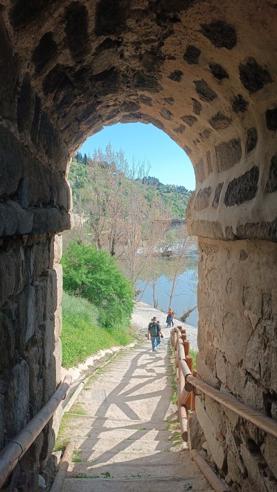 El recorrido alcanza después el Puente de San Martín, otro de los grandes símbolos toledanos, desde el que se disfruta de una vista privilegiada del río y de la conocida tirolina que lo cruza. El camino desciende entonces hacia el Torreón del Baño de la Cava, un enclave cargado de leyenda donde el rumor del agua y el canto de las aves crean un ambiente sereno. En esta zona fluvial son habituales patos, cormoranes e incluso pequeñas nutrias.